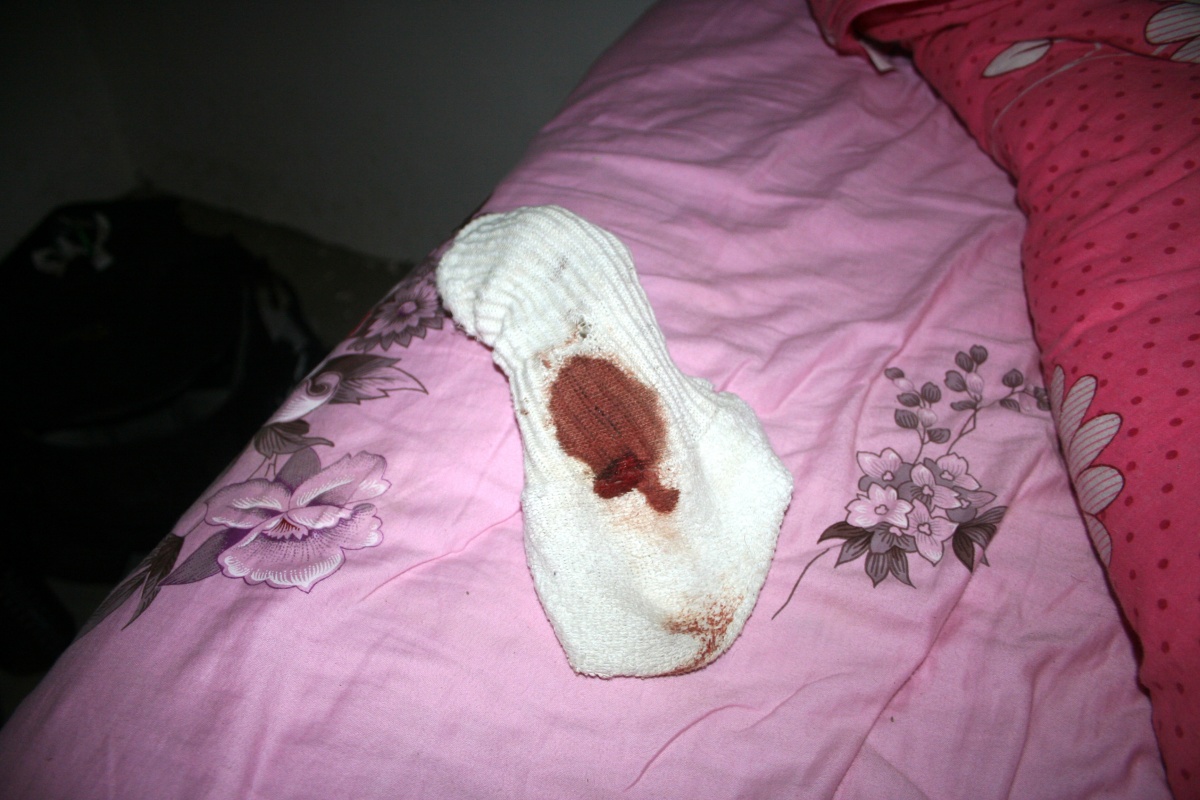 Startled, Kevin looked down and saw blood on his socks but no bite marks. He hadn't fallen either. He was baffled.